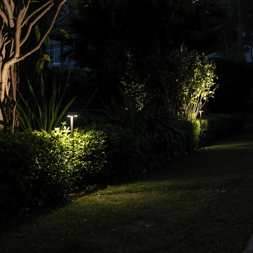 Sistemas de iluminación LED de bajo consumo para caminos, áreas verdes y elementos decorativos. Diseño personalizado con control inteligente.